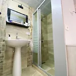 A fürdőszobai felszerelések között külön WC és zuhanyzó szerepel, valamint hajszárító és törölközők a vendégek extra kényelme érdekében.